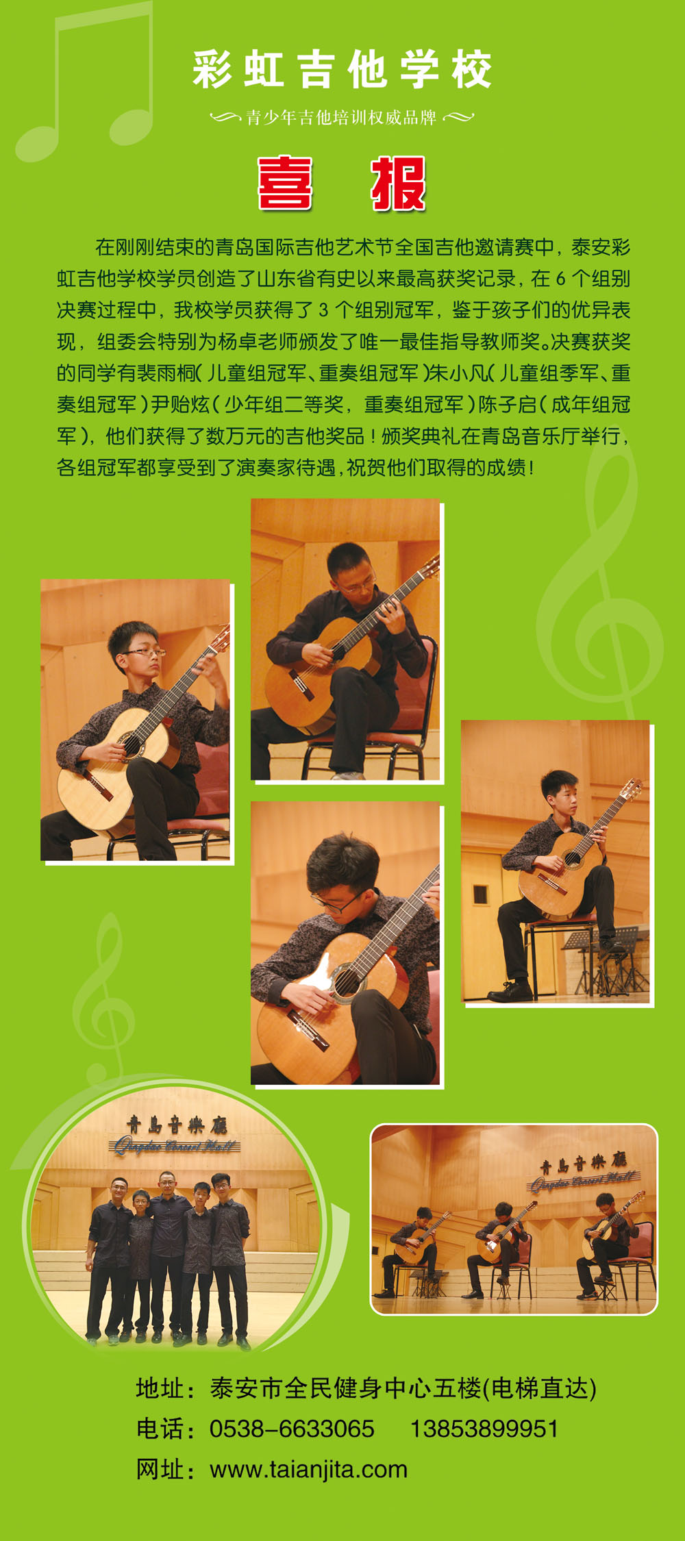 泰安市彩虹吉他培训--★★专注吉他教学★★(泰安市吉他协会会长单位) 地址:岱宗大街46号全民健身中心五楼(电梯直达)