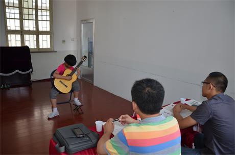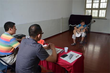 | 2013年8月6日,来自泰安及周边县市的考生共计115人来到泰安市工人文化宫,参加了本次吉他考级,彩虹吉他学校杨卓老师及吉他教育家杨成副教授担任了本次考级评委 。经过一天的紧张考评,2013年度吉他考级工作顺利完成,评委老师针对每位考生的现场表现打分,并对考生的演奏进行了点评。
